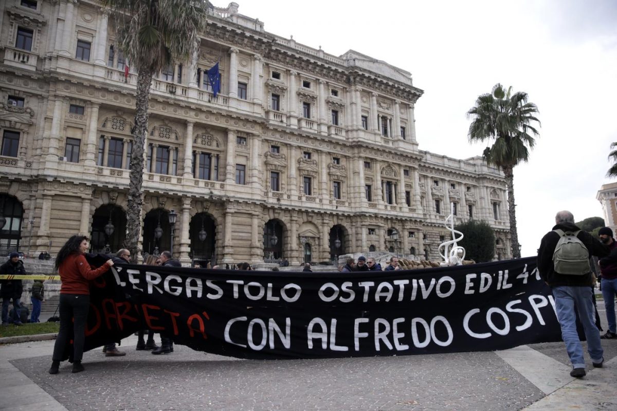 Alfredo Cospito non si alza dal letto, è a letto fisso racconta ancora il suo difensore Caterina Clia. Fa pochi passi solo per i colloqui con l’avvocato, non va più all’ora d’aria. Un centinaio di anarchici hanno partecipato al presidio davanti alla Cassazione in piazza Cavour con striscioni contro il 41bis e l’ergastolo ostativo. C’era un grande dispiegamento di forze dell’ordine e ci sono stati momenti di tensione con cameraman e giornalisti. Con un megafono ha parlato il militante storico Pasquale Lello Valitutti, affermando che gli sono pronti a scatenare l’inferno senza una decisione favorevole dei giudici. Dopo l’arrivo della decisione sono partite le grida di “Assassini, assassini”.
