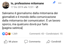 La pagina era nata per stigmatizzare e mettere in ridicolo la mitomania nel settore dei media, del giornalismo, dell’editoria anche. E quindi una condanna e una parodia dello storytellyng e del narcisismo dilagante nelle categorie menzionate. Un intento sicuramente centrato e anche giusto. Il suo manifesto: “Salviamo il giornalismo dalla mitomania dei giornalisti e il mondo della comunicazione dalla mitomania dei comunicatori. È un lavoro sporco, ma qualcuno dovrà pur farlo [pagina satirica]”. Deus ex-machina della pagina il giornalista de Il Fatto Quotidiano Andrea Scanzi. La partecipazione – i post venivano segnalati da follower e utenti – era diventata così rilevante che il collettivo aveva persino dato vita a dei contest, sempre satirici, come la coppa Scanzi, appunto, vinta dal giornalista e scrittore Lorenzo Tosa.