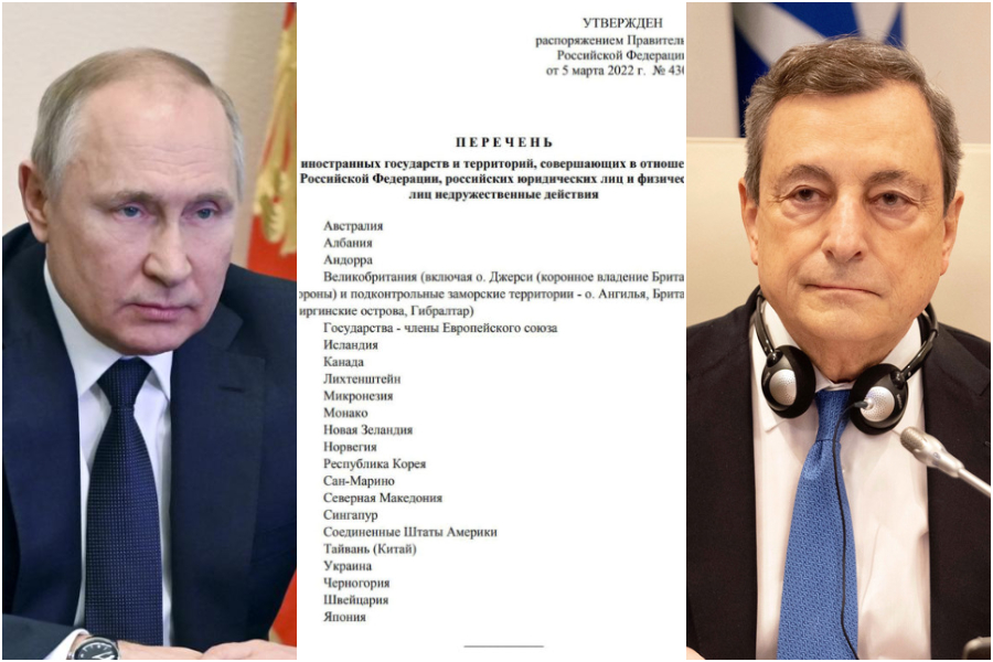C’è anche l’Italia nella lista dei “Paesi ostili” diramata dal governo russo, rei di aver applicato sanzioni nei confronti del Cremlino dopo l’invasione da parte delle truppe fedeli a Putin della vicina Ucraina.
