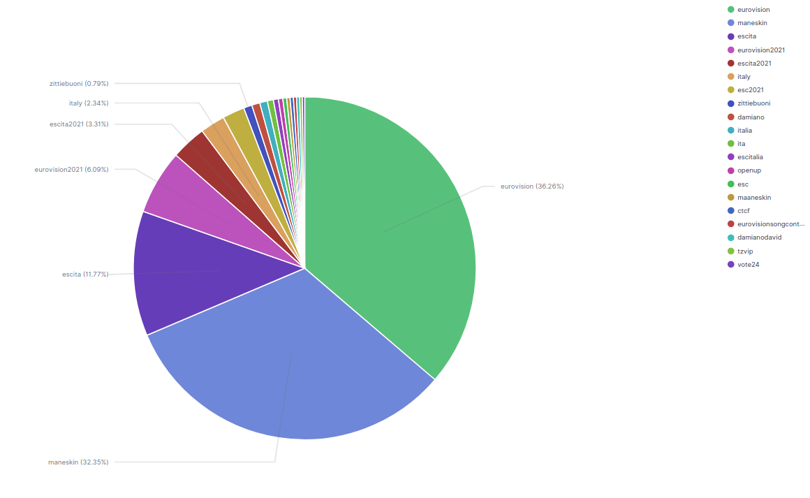 Gli argomenti principali individuati dagli utenti, oltre a Eurovision e Maneskin, sono stati EscIta, Italy, Zitti e Buoni e Damiano. Bene gli hashtags di TvZip e CtcF “Che tempo che fa”. Proprio la trasmissione di Fazio è stata protagonista di un tweet di successo che ha raccolto 17 mila mi piace. Spicca il nome di Damiano, frontman della band, che grazie al vote24 ha avuto un bagno di folla del pubblico.