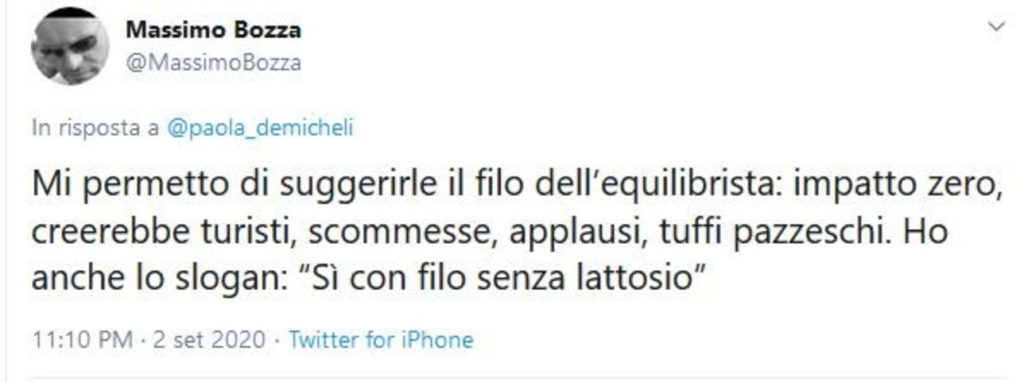Il riferimento alla pista ciclabile ha scatenato la facile ironia dei social network, tra chi suggerisce l’uso del “filo dell’equilibrista”, a chi preferisce “calzari galleggianti per camminare sulle acque”, fino all’utente che spinge invece per la soluzione del “ponte tibetano, economico ed eco-sostenibile”.