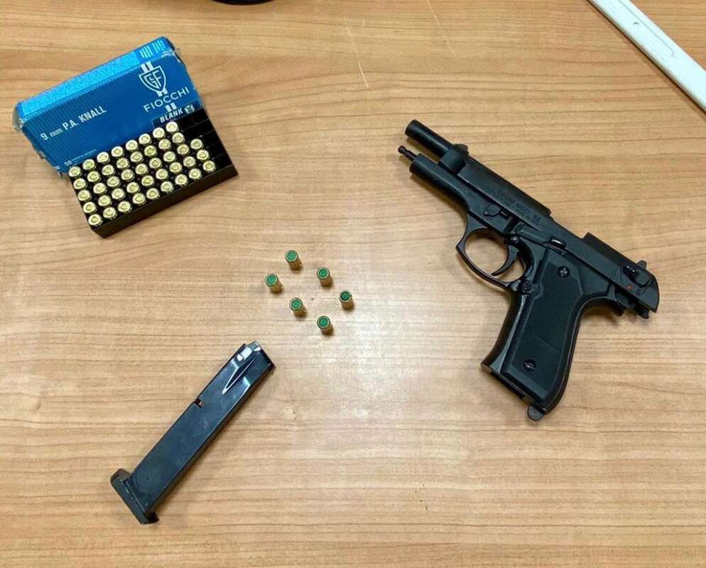 L’intervento dei militari dell’Arma ha consentito di bloccare il rapinatore che, per guadagnarsi la fuga, ha minacciato i carabinieri con una pistola, poi risultata un’arma scenica priva di tappo rosso. Nel corso della successiva perquisizione personale e veicolare l’arrestato è stato trovato in possesso oltre che della pistola calibro 9 mm, con colpo in canna ed altri cinque invece inseriti nel caricatore, anche di una scatola contenente 43 colpi a salve.