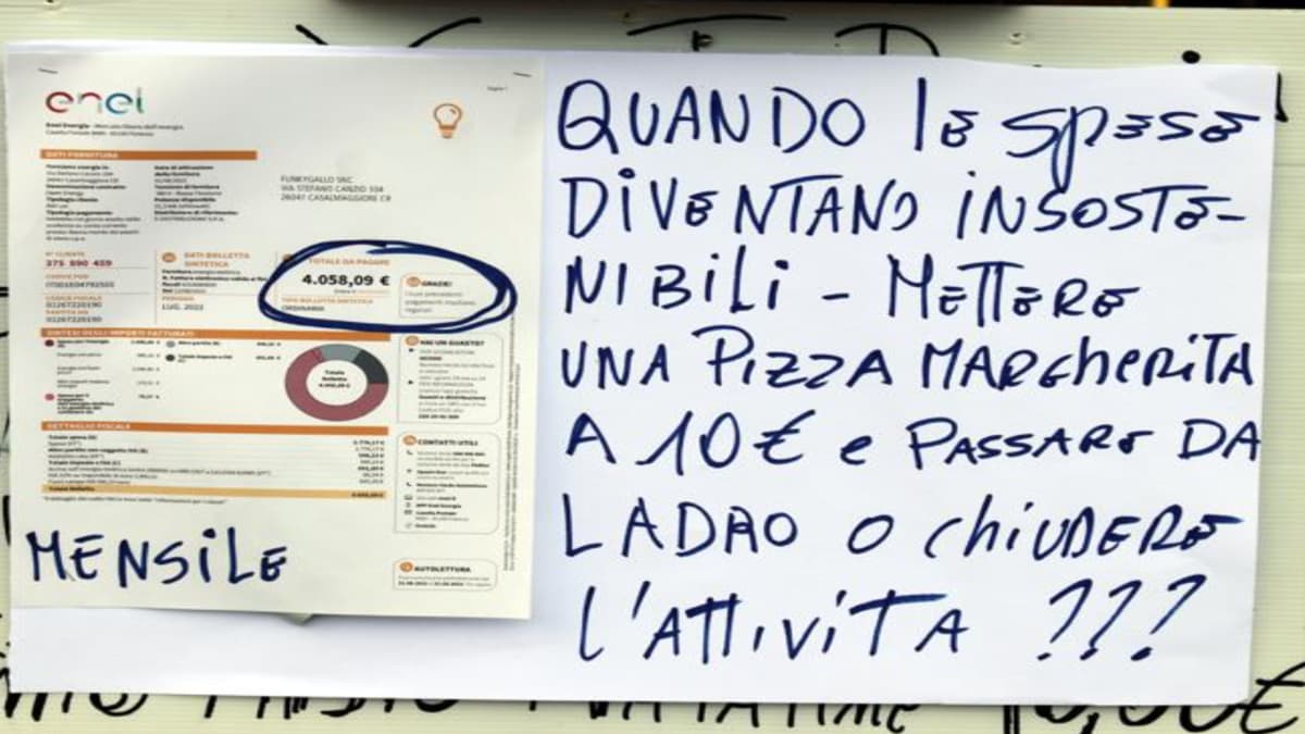 A raccontare della sua iniziativa è il Corriere della Sera. Sulla vetrina del suo locale Rovati ha affisso un cartello eloquente: “Quando le spese diventano insostenibili. Una pizza margherita a 10 euro e passare da ladro o chiudere l’attività?”, è la domanda retorica del ristoratore, che accanto al cartello piazza la bolletta dell’energia elettrica di luglio 2022, per un esborso che supera di poco i 4mila euro.
