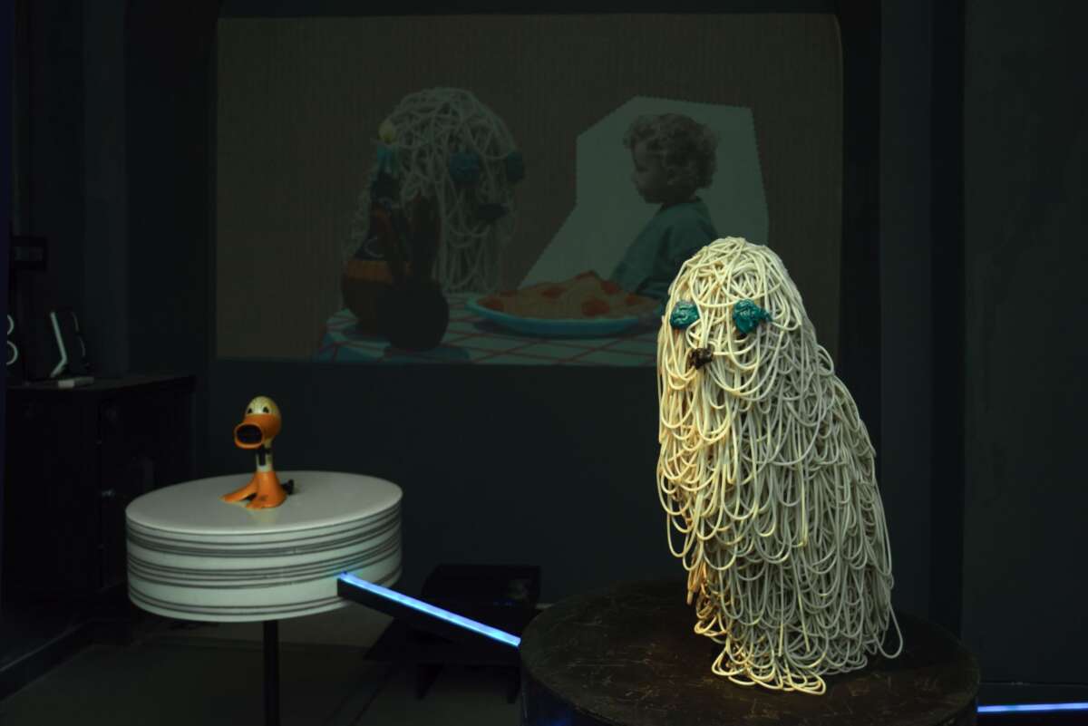 LA MOSTRA PERMANENTE DEL PLART – La sala denominata “L’era del diamante” è un punto di snodo tra l’esperienza immersiva di Plart Vision e la collezione storica del Museo Plart. Elemento predominante dell’allestimento è la ricostruzione in scala di una molecola organica sui cui atomi sono disposti oggetti della collezione ispirati al mondo dei cartoon. Troneggia al centro, Randagio, un cane in polistirene nato da scarti di lavorazione di un’azienda campana. Questo stesso personaggio immaginario è il protagonista del film animato “L’incredibile storia di Max e Randagio” del regista Pasquale Napolitano, che viene proiettato su una delle pareti della sala. L’altro elemento che in questa sala seduce i visitatori è il San Gennaro realizzato dal duo di artisti Andrea Barzini e Silvio Pasquarelli, frutto di un riciclo creativo dei più svariati prodotti appartenenti alla categoria dell’usa e getta.