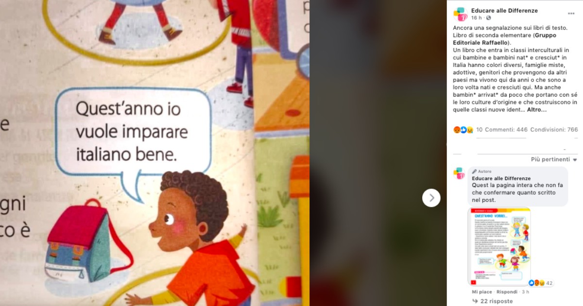 “Mica” è, solo, il caso delle Avventure di Leo, il libro dei buoni propositi per i bambini delle scuole primarie, con l’illustrazione del bambino di colore che promette: quest’anno io vuole imparare italiano bene. Questo libro ha scatenato un mare di polemiche. E’ razzista o no? Io, da bambino sarei cascato su quest’anno, avrei detto st’anno, anzi, ogni tanto mi scappa pure mo’. Che magari non è razzismo, solo superficialità, razzismo sarebbe stato se alla frase ci avessero aggiunto mizz Rozzella, che è una battuta facile, la prima a circolare sui social. Sì, superficialità, che anch’essa però è un segno di poco rispetto della diversità, delle differenze. C’è un libro di testo, sempre per le elementari, in cui gli alunni debbono colorare i bambini di una illustrazione: i maschi costruiscono, fanno capriole pazzesche. Le femminucce preparano la tavola. È lo stereotipo il problema vero, più di un razzismo che è poi conseguenza