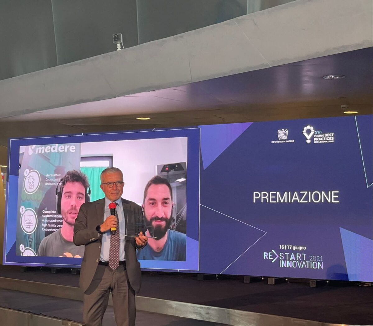 MEDERE SRL (Roma) ha sviluppato e brevettato un processo innovativo per la realizzazione di plantari su misura in modo rapido, economico, eco-friendly e con una particolare attenzione all’esperienza dell’utente finale. Categoria di concorso: digitalizzazione.