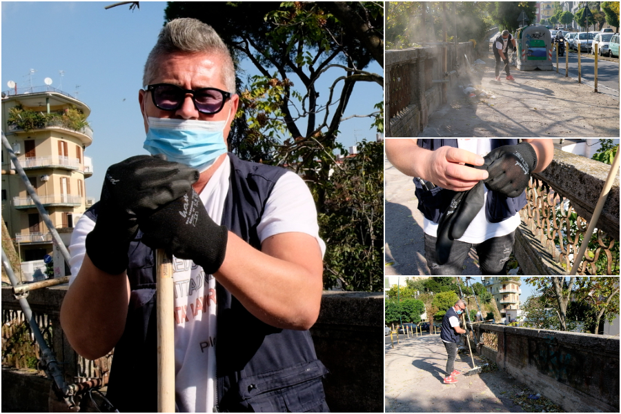 Così Paolo ha ripulito solo negli ultimi giorni via Conte della Cerra, accanto all’Asl Napoli 1. “Ho ripulito di tutte le erbacce, delle feci dei cani, sono già venuto due volte su via Girolamo Santacroce, Salvator Rosa, le aiuole di fronte al ristorante Ciro a Mergellina, la spiaggia. L’ho fatto anche insieme ad altre persone che si dedicano a pulire la città”. Paolo ha ripulito anche i giardinetti di piazza Cavour da anni lasciati all’incuria e all’abbandono. “Bottiglie, siringhe, feci, spazzatura, coperte…c’era davvero di tutto – continua Paolo – era diventata una questione di principio: dicevano che ci volevano 10 persone e invece bastava solo un po’ di buona volontà. Così ho ripulito tutto”.