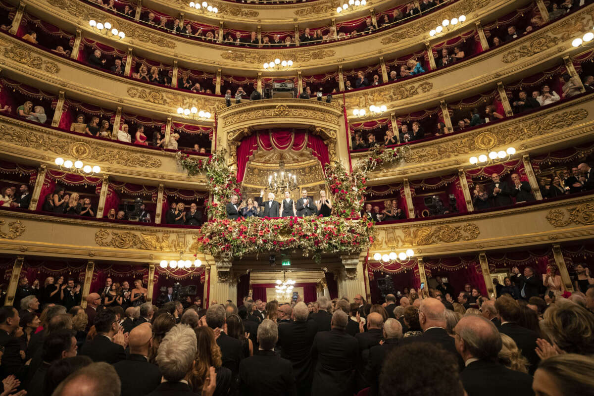 Preceduta da un lungo applauso di tutto il teatro al presidente della Repubblica, Sergio Mattarella, si è aperta puntuale alle 18 la stagione inaugurale della Scala con la ‘Tosca’. È la prima volta che l’opera di Giacomo Puccini viene messa in scena il 7 dicembre. Il capo dello Stato è arrivato in compagnia della figlia Laura. In Teatro anche il presidente del senato Maria Alberti Castellati, il presidente della Regione Attilio Fontana,il sindaco di Milano Giuseppe Sala, Maria Elena Boschi, molti personaggi dell’economia, come Emma Margaglia, Gabriele Galateri di Genola, Corrado Passera e Piercarlo Padoan del mondo dello spettacolo, da Patti Smith a Vittoria Puccini a Carla Fracci, all’etoile Svetlana Zhakarova, della moda, come Dolce e Gabbana, ma anche Elodie e Marracash, Bruno Vespa. Un pubblico eterogeneo, elegante, prevalentemente in nero, ma con qualche trasgressione. Fuori piazza blindata, con le strade transennate.