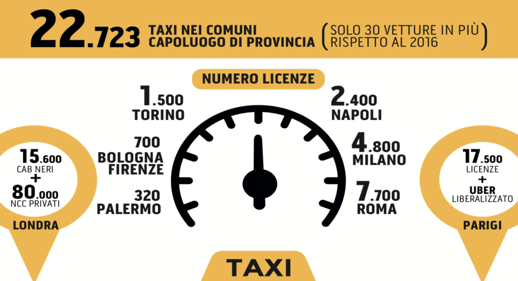 Ai tassisti, come si diceva, non piace. Non vogliono aumentare il numero delle licenze perché andrebbe ad inflazionare il valore di quella che già hanno. Accusano il trasporto pubblico locale dicendo che non possono essere loro gli unici a pagare i disservizi di mesi e anni. In ogni città d’Italia e non solo nelle tre finite nel mirino dell’Antitrust (Roma, Bologna, Milano). Al di là delle code chilometriche ovunque, a Torino 9 taxi su dieci ti dicono prima di salire che “il Pos non funziona”. A Firenze non è possibile prenotare una macchina alle 6 del mattino.