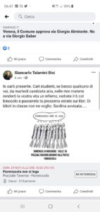 A denunciare il post su Facebook è stata l’Unione degli studenti: “I professori leghisti minacciano di bocciatura gli studenti che vogliono manifestare con i discorsi di odio della destra – punta il dito Giulia Biazzo, coordinatrice nazionale dell’Unione – È un comportamento inaccettabile contro cui ci batteremo fermamente. Nessun docente può impedirci di manifestare, né possiamo accettare che si dichiari fascista. Questi personaggi devono essere cacciati dai luoghi della formazione”. “Nei prossimi giorni – prosegue Biazzo – terremo attivo lo sportello sindacale Sos Studenti. Raccoglieremo le segnalazioni di questi abusi e ci opporremo sia per le manifestazioni delle sardine che per i cortei dello sciopero globale per il clima del 29 novembre. Le minacce non ci fermeranno, scenderemo in piazza ancora più determinati”.