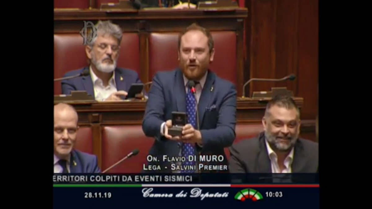 In Parlamento si discute del decreto “Disposizioni urgenti per l’accelerazione e il completamento delle ricostruzioni in corso nei territori colpiti da eventi sismici”, per la ricostruzione del post terremoto. Flavio Di Muro, deputato della Lega prende la parola e dice: “In tutta questa attività che facciamo tutti i giorni noi tralasciamo i veri valori”. La Camera è attenta sull’intervento del deputato leghista pensando che si tratti dei danni del terremoto ma il discorso prende una strana piega:”Tralasciamo le persone che ci vogliono bene, le persone che amiamo. Mi dispiace interrompere lavori così importanti di questa seduta ma abbiate rispetto per quello che sto per dire, per la mia persona e per la vita di un uomo”.