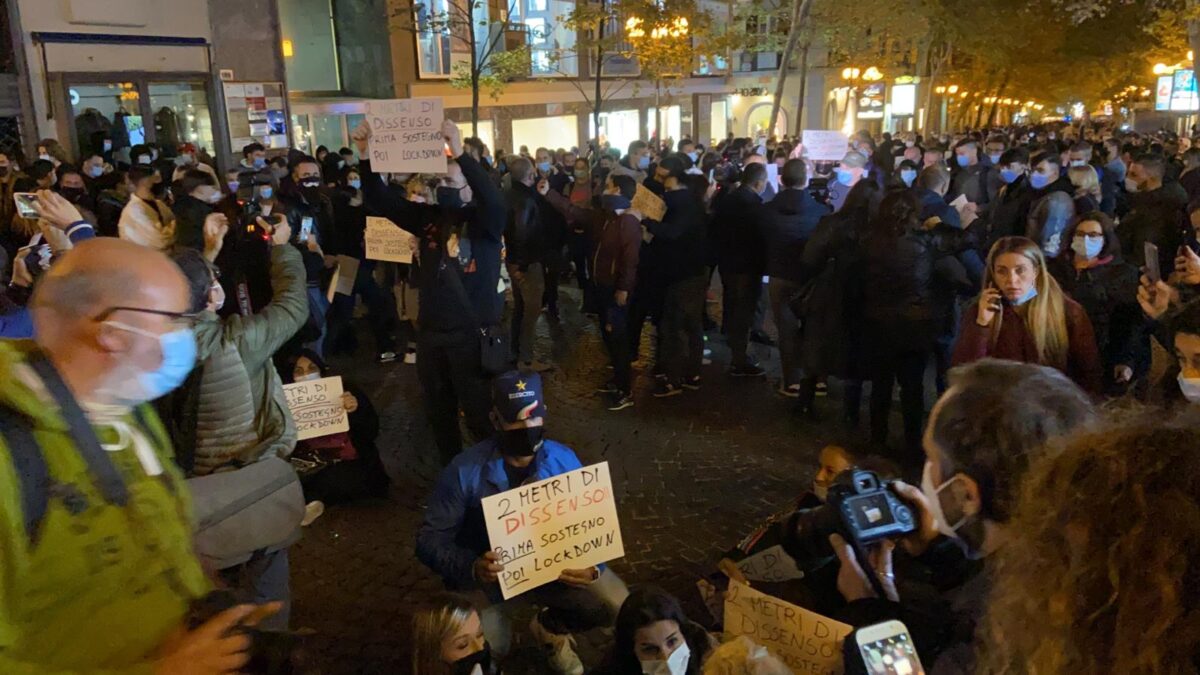 Alcune centinaia di persone sono scese nuovamente in strada a Napoli, nel quartiere Vomero, per protestare contro i provvedimenti della Regione Campania e del governo. Si tratta dell’ennesima manifestazione di protesta nel capoluogo partenopeo dopo quelle di venerdì e sabato, con la prima in particolare che nella zona di Santa Lucia ha provocato ore di disordini, due arresti e due membri delle forze dell’ordine feriti.
