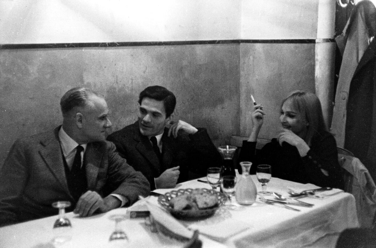 Nelle “stanze”, trovavi i costumi da Maria Callas indossati nei fotogrammi di Medea, esposti accanto a ceste colme di nocciole raccolte a Chia, nel bosco intorno alla torre medievale da Pasolini acquistata nel 1970 con l’intenzione dichiarata di trascorrervi la vecchiaia, coabitando magari con la famiglia di Ninetto Davoli. C’è ancora modo di ricordare la presenza di Alberto Moravia, la sua andatura d’ospite, amico, d’onore, l’andatura del parente, del congiunto, la sua compagna Carmen Llera che lo tiene per mano, e poi, elegantissimo, «regimental» nel gusto, mano in tasca, Alberto Arbasino che confabula proprio con la Betti di com’erano «certi giorni insieme a Pier Paolo», discutono di cose amate insieme e forse ormai assenti, com’era Roma al tempo di Giro a vuoto, com’era Gadda, squisito, «davvero carino» incalza lei, la vedova Pasolini, abito verde ampio come uno Zeppelin, in gran spolvero per la vernice culturale e mondana. «L’unica forza contestatrice è il passato», affermava d’altronde Pasolini. Arbasino nel suo libro Un paese senza ha scritto cose molto chiare e terse su PPP.