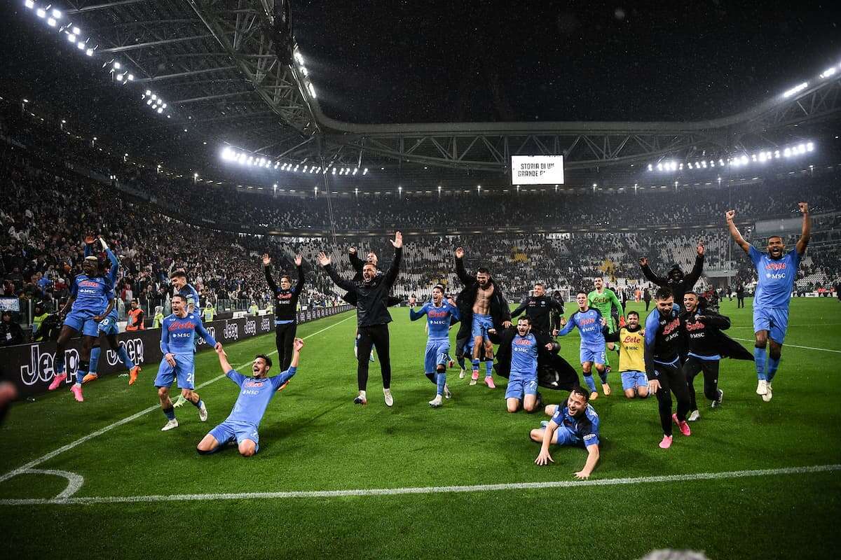 La vittoria era stata siglata nei minuti di recupero da Giacomo Raspadori. Un tiro a volo di sinistro su cross di Elmas. 1 a 0. Gol Scudetto. È partita in campo la festa dei calciatori azzurri, è continuata negli spogliatoi e sull’aereo di ritorno, è esplosa a Napoli. All’aeroporto sono arrivati in diecimila. Il pullman è uscito intorno alle 2:30 da Capodichino. Sul tetto sono sbucati i calciatori Victor Osimhen, Kvicha Kvaratskhelia, Hirving Lozano, Frank Anguissa, il capitano Giovanni Di Lorenzo.