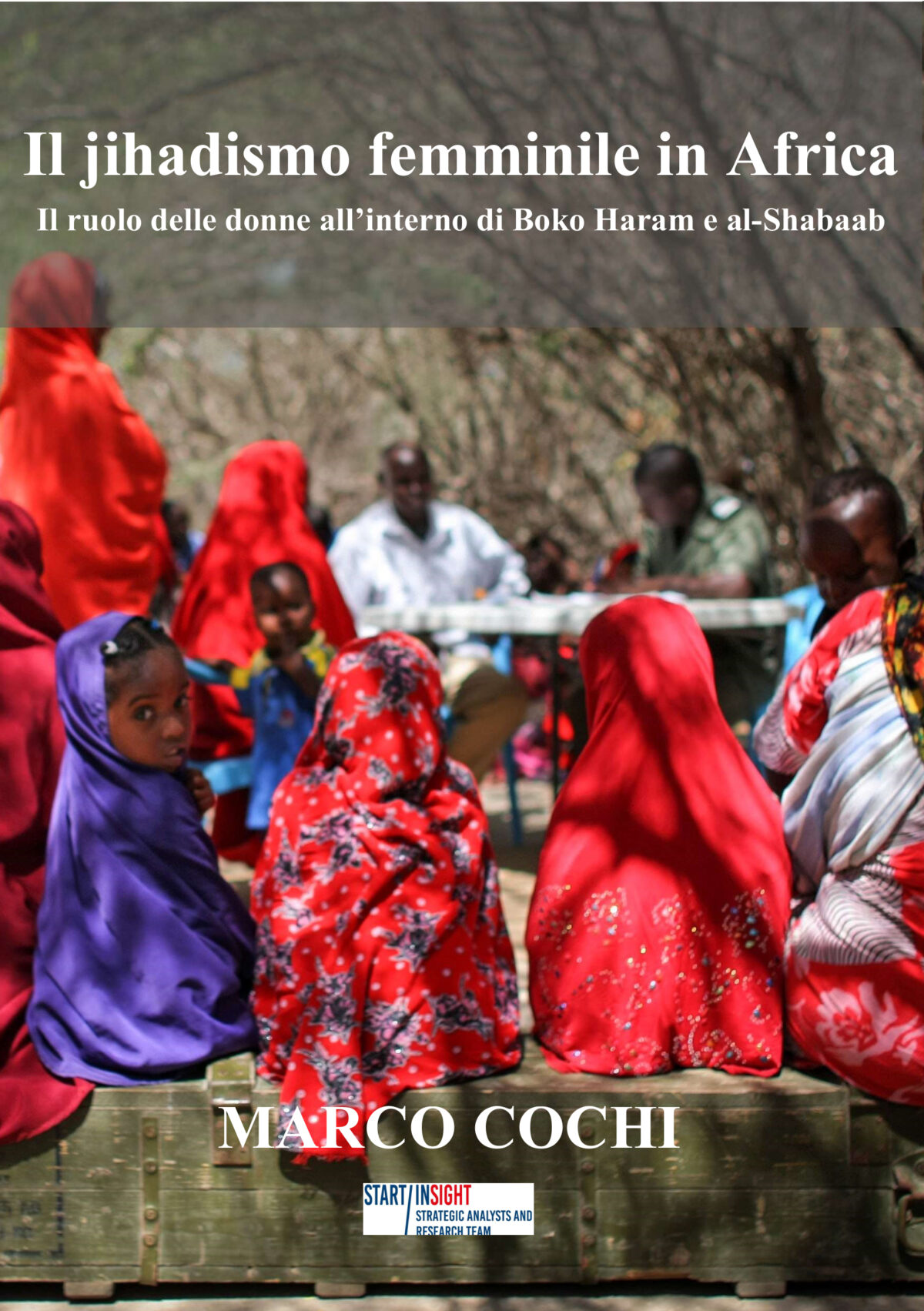 Marco Cochi, giornalista professionista e blogger (afrofocus.com), già autore di due saggi sull’evoluzione della minaccia del terrorismo islamista nel continente africano, ha pubblicato con la casa editrice Start Insight di Lugano un nuovo e-book sull’argomento (scaricabile gratuitamente a questo link). Questa volta ha concentrato la sua analisi su un fenomeno poco trattato, la diffusione del jihadismo femminile in Africa, orientando la disamina sul ruolo che esercitano le donne all’interno dei gruppi estremisti più letali del continente: Boko Haram, operativo dalla seconda metà del 2009 nel nord-est della Nigeria e nel bacino del Lago Ciad, ed al-Shabaab, che dalla fine del 2006 opera in Somalia ed è particolarmente attivo anche in Kenya.