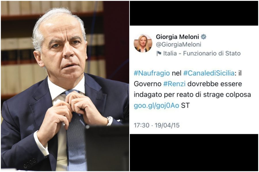 Lo vedete riprodotto qui, su questa pagina, il tweet con il quale qualche anno fa, nell’aprile del 2015, Giorgia Meloni sostenne che il presidente del Consiglio, che all’epoca era Matteo Renzi, avrebbe dovuto essere indagato per strage colposa, perché su di lui ricadeva la responsabilità di un tragicissimo naufragio, al largo delle coste libiche, che costò la vita a centinaia di profughi.