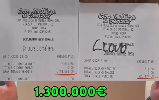 Basalari parte quindi dall’ultimo locale aperto, il “piccolo take away dedicato al delivery” di viale Brianza a Milano che ha fatturato 222.318 euro in appena due mesi di attività. Il negozio di Roma, aperto nel marzo 2024, ha fatturato 1.118.668 euro più 225.174 attraverso la piattaforma Glovo per un totale di oltre 1 milione e 300mila euro incassati in 10 mesi. L’imprenditore parla poi del negozio di Milano e lo definisce “cavallo di battaglia” del gruppo che nel 2024 ha fatturato 3.187.350 euro cui vanno aggiunti 605.031 di delivery grazie a Glovo per un totale di 3milioni e 700mila euro. Il locale nel 2023 aveva fatturato 791.221 euro in poco più di due mesi di attività. Infine il negozio più “antico“, quello di Napoli, ha fatturato 3.339.131 euro e 194.471 di Glovo superando così i 3,5 milioni di euro totali e facendo registrare un notevole incremento rispetto all’anno precedente quando si era fermato a 1.496.712 euro. In totale la società “Con mollica o senza?” ha fatturato quindi 8.832.193 mila euro, e nel video Basalari si sofferma “quasi 9 milioni su un progetto che tanti davano per spacciato“.