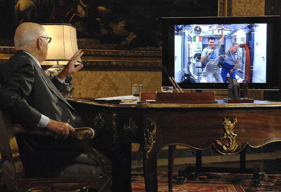 Dopo aver salutato con qualche parola in russo il comandante della ISS, Dmitry Kondratiev, e poi in inglese il comandante dell’Endeavour, Mark Kelly, Napolitano si rivolse ai due astronauti del corpo ESA di nazionalità italiana con parole di riconoscenza.