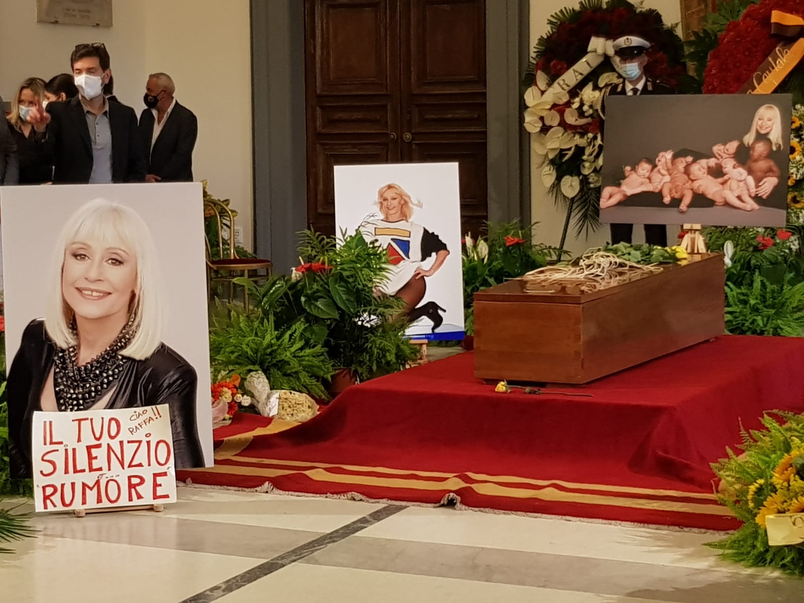 Cuscini di fiori gialli, il suo colore preferito, le corone in fondo, una delle quali inviata dal suo fanclub ufficiale, accanto a quelle della Rai e della sindaca Virginia Raggi, che ha accolto il corteo funebre ed ha atteso tutti nella sala della Protomoteca non risultando mai invadente. La Camera Ardente continuerà fino a mezzanotte e poi giovedì 8 luglio e venerdì 9 mattina prima del funerale. Nella sala avviene il racconto della vita artistica di Raffaella Carrà: come colonna sonora ci sono le sigle, proiettati invece i programmi iconici dell’artista e conduttrice. Attorno alla bara di legno semplice come voleva Raffaella, una serie di foto che la ritraggono in momenti chiave della sua carriera e privata come la Fondazione Amici dei bambini che aveva fondato per promuovere le adozioni a distanza facendo ottenete una vita migliore a migliaia di bambini, lei che figli non li ha mai potuti avere. All’esterno una folla fatta entrare a piccoli gruppi e per la quale è stata a disposizione tutto il giorno l’acqua distribuita in postazioni della Protezione Civile.