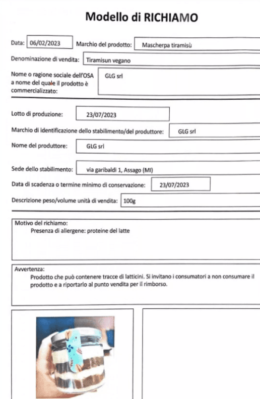 Sottoposti a fermo amministrativo i sette vasetti di Tiramisun presenti nel locale milanese e ritirati dal marcato gli altri vasetti presenti in circolazione. Il prodotto “può contenere tracce di latticini. Si invitano i consumatori a non consumare il prodotto e a riportarlo al punto vendita per il rimborso” si legge sul sito del ministero della Salute che mette in allerta sul prodotto (marchio Mascherpa tiramisù prodotto da Glg srl ad Assago) a chi è allergico alle proteine del latte.