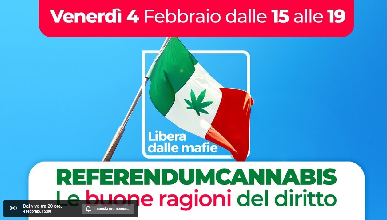 In vista di questo momento, il Comitato Promotore del Referendum Cannabis organizzerà – venerdì 4 Febbraio 2022, a partire dalle ore 15:00, presso il Centro Congressi Cavour di Roma – un seminario giuridico per approfondire le motivazioni di diritto costituzionale e penale a sostegno della proposta referendaria.