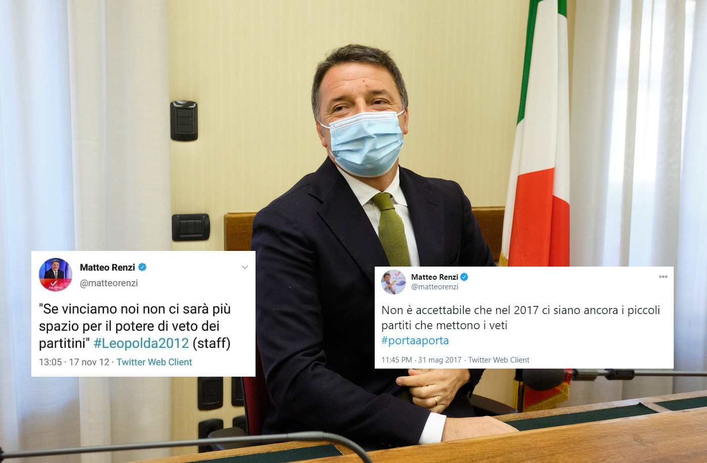 Quello che Renzi sconta, oggi che ‘fa la guerra’ al premier Giuseppe Conte, è proprio il ribaltamento del ruolo, da pesce grande a pesce piccolo ‘bullizzato’. Così alcune delle pagine Facebook ‘politiche’ più note, da Socialisti Gaudenti a Hipster Democratici, hanno ricordato i trascorsi dell’ex premier, quando nel 2012 alla Leopolda ricordava che “Se vinciamo noi non ci sarà più spazio per il potere di veto dei partitini”, o come quando cinque anni più tardi da Porta a Porta (appena rieletto segretario del Pd, ndr) riteneva “non accettabile che nel 2017 ci siano ancora i piccoli partiti che mettono i veti”.