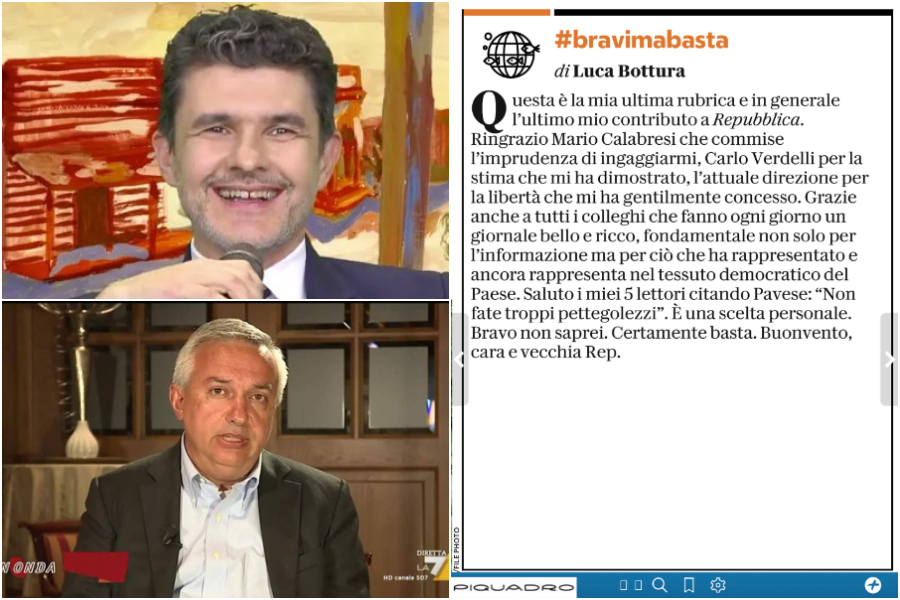 Niente più Luca Bottura su Repubblica. Domenica infatti la sua rubrica #bravimabasta è uscita per l’ultima volta sul quotidiano diretto da Maurizio Molinari e passato ormai mesi fa nella galassia Agnelli-Elkann, che hanno preso il controllo del gruppo Gedi.