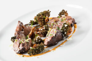 Si comincia con due proposte differenti ma che inquadrano bene la filosofia del locale. Camuflage una caponatina estiva, dove l’estratto freddo di verza rossa che abbraccia tutte le verdure cambia colore in una scenografica presentazione al tavolo grazie al succo di limone. Un, Dos, Tres invece è un tris di mini Tortillas con un preciso ordine da seguire. Gambero disidratato in sale e zucchero, il baccalà e per finire un abbinamento dove il cioccolato bianco fa da trait d’union e pulisce il palato. Tra le proposte dei primi i tonnarelli fatti dallo chef Fabio Sardella in due diverse ricette, la cozze e pecorino con vellutata di broccolo siciliano (non salata) e servita a tavola. Rosso su rosso è l’altra proposta, questa volta la pasta è mantecata con succo di barbabietola (che gli regala il colore) e menta che invece rinfresca il palato. Tra i secondi da segnalare la lepre al burro chiarificato abbinata alla bisque di crostacei. Interessante anche la proposta di un aperitivo, un tris di mini cornetti romani all’amatriciana, cacio e pepe e carbonara oppure ossobuco e maionese allo zafferano e baccalà mantecato con pere candite. La carta dei vini sarà rinnovata a breve e promette grandi sorprese, come d’altra parte il futuro di Fabio e Matteo.