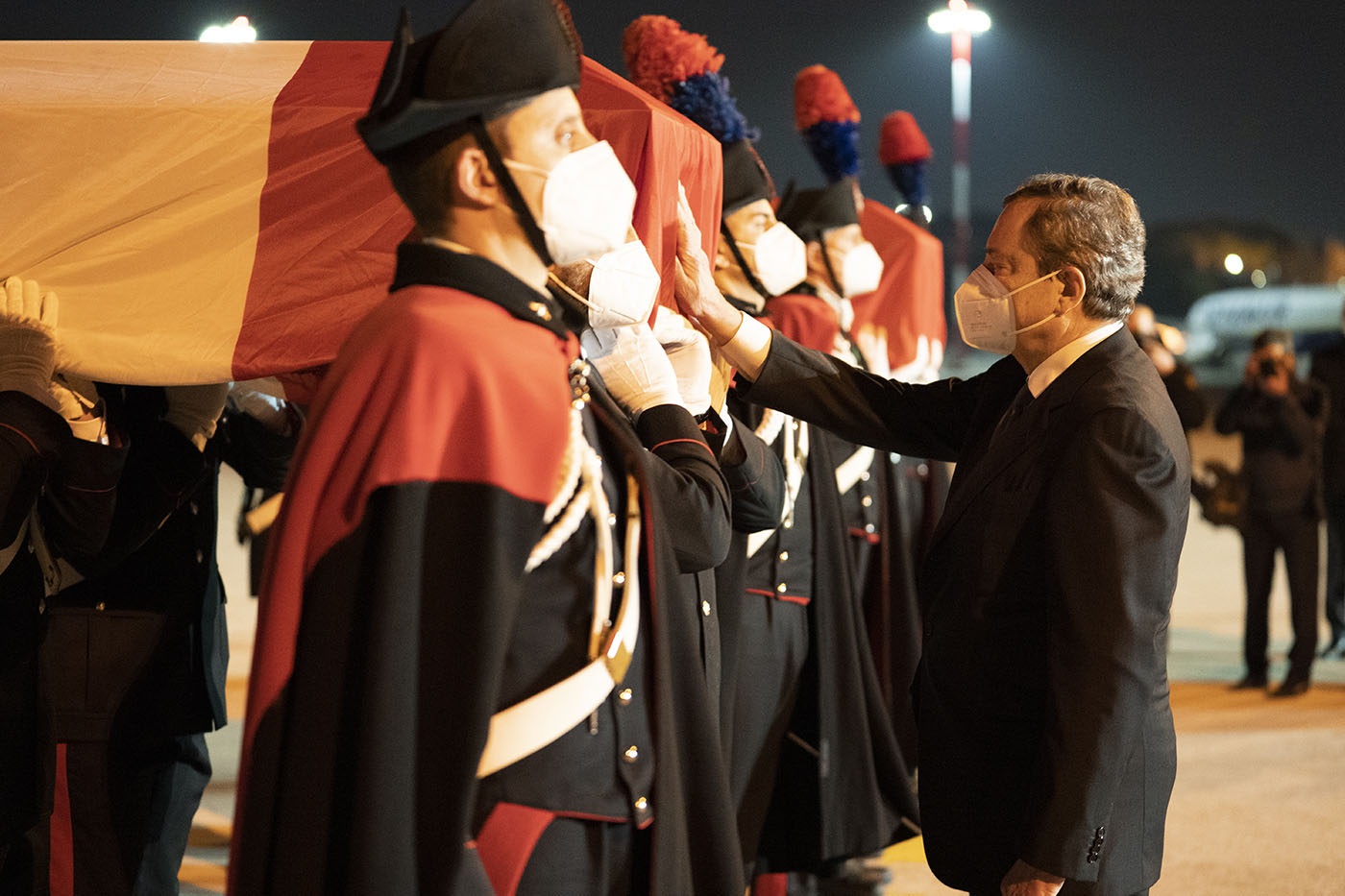 Sono rientrati nella tarda serata di ieri in Italia i corpi dell’ambasciatore nella Repubblica Democratica del Congo Luca Attanasio e del carabiniere Vittorio Iacovacci, morti in un agguato lunedì mattina. Il rientro all’aeroporto di Ciampino, a Roma. Presente il Presidente del Consiglio Mario Draghi. Assente il Presidente della Repubblica Sergio Mattarella, ma soltanto per problemi di salute. Presenti anche il ministro della Difesa Lorenzo Guerini e degli Esteri Luigi Di Maio.