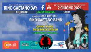 Il #rinogaetanoday2021 sarà trasmesso il 2 giugno alle ore 18:30 circa in diretta streaming sulla pagina Facebook “Rino Gaetano Band” e sul loro canale Youtube. Inoltre l’evento sarà trasmesso on air su Radio Italia Anni 60 Roma FM 100.5. A condurre l’evento sarà la speaker radiofonica Sara Brestolli in un viaggio tra sorprese e tanta musica con la Rino Gaetano Band e gli ospiti d’eccezione Diana Tejera e Massimo Di Cataldo oltre ai contenuti speciali di altri apprezzati artisti del panorama musicale italiano.