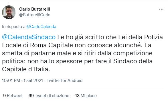 Da anni alto dirigente della Polizia Locale, Carlo Buttarelli è stato anche Comandante per un anno, tra il 2012 e il 2013, prima di dimettersi in polemica con l’allora sindaco appena eletto Ignazio Marino. Quando si insediò Virginia Raggi nel 2016, il suo nome era tra i papabili come nuovo possibile capo dei caschi bianchi, incarico poi assegnato a Diego Porta e che l’ha visto quindi relegato al ruolo di vice. “E lei sarebbe un pubblico funzionario? Che vergogna”, “’È un fanfarone’ fa ridere. E spiega molto bene lo sfascio di Roma. Hanno una paura matta che qualcuno li faccia lavorare”, accorre qualche utente in soccorso del candidato sindaco.
