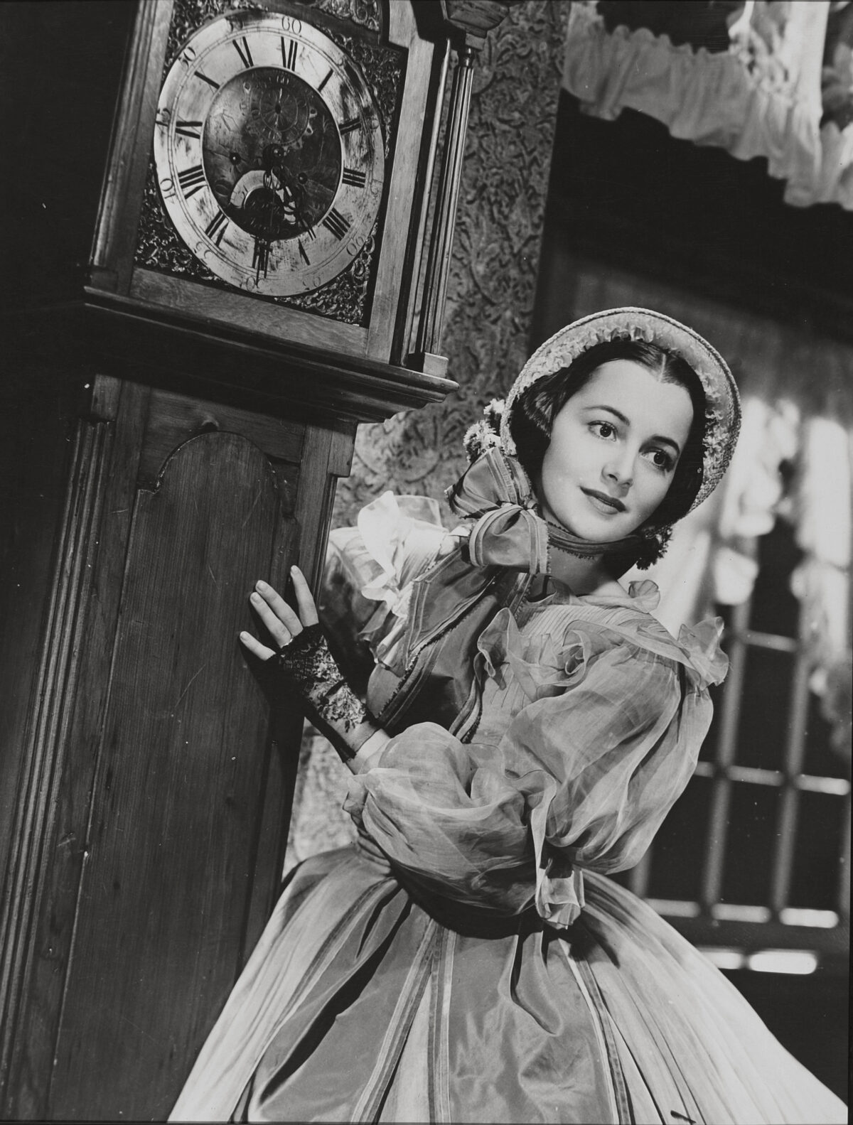 Trovava dentro di sé la forza dell’eroina solo quando si trattava di difendere il suo uomo, il suo idolo. Perfetto modello di ciò che si chiedeva alle donne – soprattutto americane – di allora. Il ruolo che l’ha consacrata non è dissimile: in Via col vento, 1939, di Victor Fleming, la sua Melania è esattamente quella del libro, quanto a melensaggine, modestia, straripante bontà e generosità, ingenuità che è più tontaggine che candore. Non si può immaginare nessuna che più di Olivia possa far credere l’incredibile, cioè che davvero ama e ammira Rossella, la terribile Rossella disposta a qualunque cosa pur di soffiarle il marito. Il primo Oscar arriva con A ciascuno il suo destino, 1946 per la regia di Mitchell Leisen, il secondo per L’ereditiera di William Wyler, 1949, in cui ancora, proprio come in Via col vento, continua a non vedere, a non capire, a spalancare gli occhi già grandi di loro in uno sguardo da vittima sacrificale, ma questa volta non rivolto a uomo che perlomeno è bravo e le vuole bene, come era Ashley-Leslie Howard, ma rivolto a un grande farabutto che ambisce solo alla sua eredità. Però, alla fine, la ricca insignificante ragazza tira fuori unghie e carattere. Quando si rende conto della realtà, sceglie la linea dura e sbeffeggia l’aspirante approfittatore nel modo più doloroso. E nel cambiamento di espressione, gestualità, sguardo, Olivia è meravigliosa.