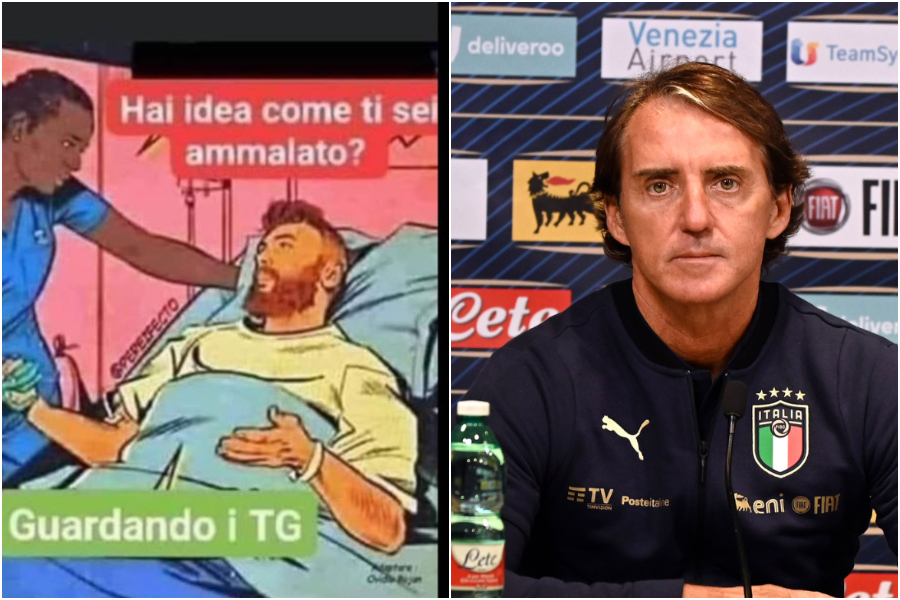 Una vignetta che riprende il peggio della vulgata comune dei no-vax, no-mask e dei negazionisti del Covid-19, pubblicata dal commissario tecnico della Nazionale italiana Roberto Mancini. Il ‘Mancio’ torna a far discutere con una ‘story’ pubblicata sul proprio profilo Instagram, in cui si vede un paziente malato di Covid che, rispondendo ad una domanda sull’origine del contagio, risponde di averlo preso guardando troppi telegiornali.