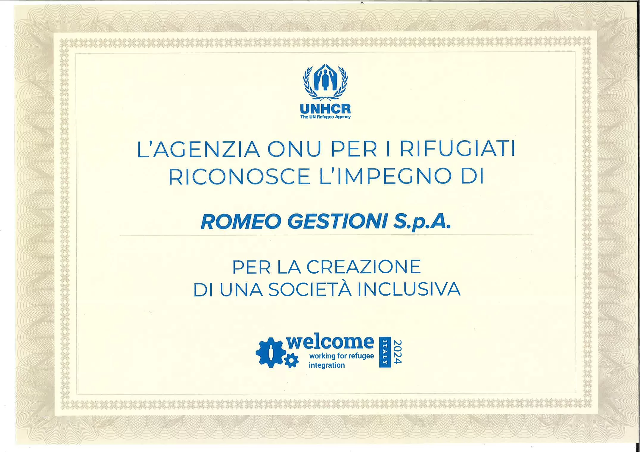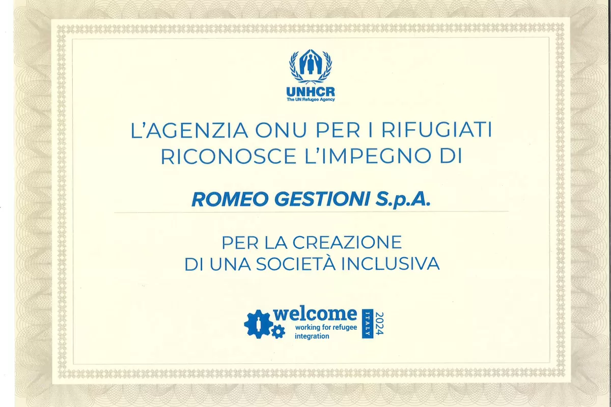 Il riconoscimento sottolinea il ruolo attivo della Romeo Gestioni come società inclusiva, impegnata a sostenere il processo di integrazione dei rifugiati nel mondo del lavoro. La partecipazione a questo progetto rappresenta un passo importante verso un futuro più equo e solidale, in cui ogni individuo ha la possibilità di contribuire e di ricostruire la propria vita con dignità.