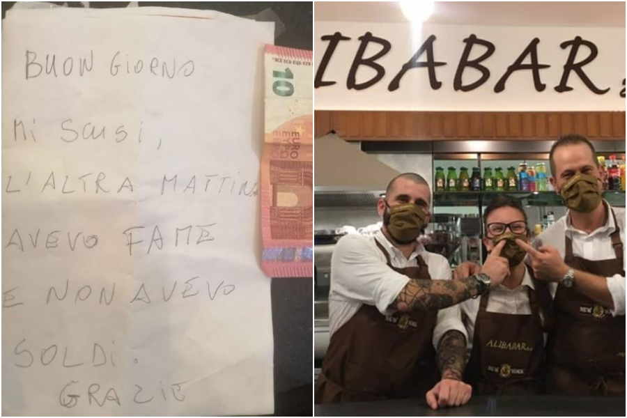 Un biglietto bianco con una scritta in stampatello che recitava questo: “Buongiorno, mi scusi, l’altra mattina avevo fame e non avevo soldi. Grazie”, oltre a una banconota da 10 euro. E’ quello che alcuni giorni fa ha trovato davanti la porta del proprio locale il titolare di un bar di Pistoia.