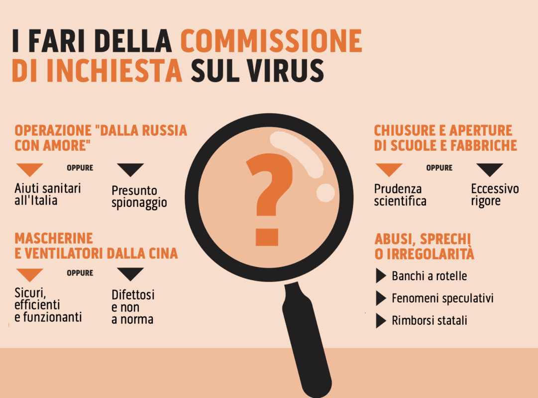 Gli italiani ricordano molto bene le conferenze stampa fiume, le decisioni prese allo scadere della giornata, le incertezze che hanno lasciato le famiglie sul lastrico di un buio totale a poche ore dall’entrata in vigore di determinate misure, le ambiguità, la regia comunicativa di Rocco Casalino. Ma questo è solo il contorno di un periodo storico che ha avuto un impatto inequivocabile sull’Italia e che merita di finire sotto la lente di ingrandimento per spazzare via dal campo dubbi, punti interrogativi, perplessità, sospetti.