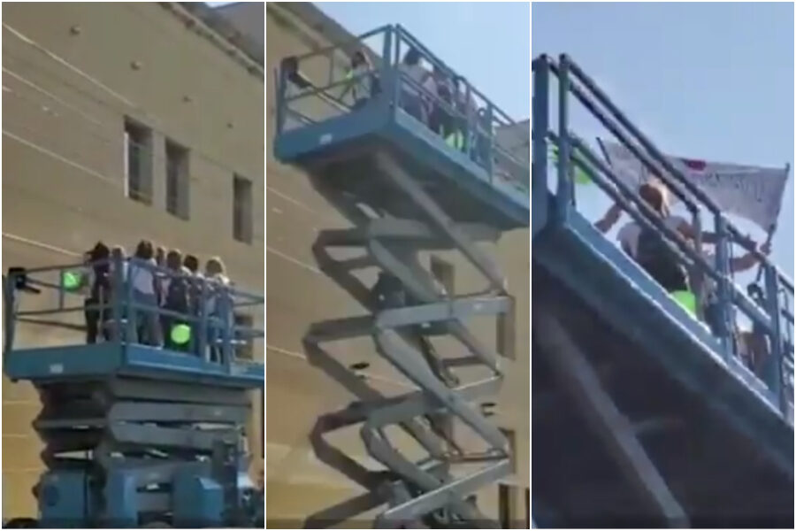 Niente visite in oncologia per il Covid, 12 donne salgono su una gru per salutare l’amica ricoverata