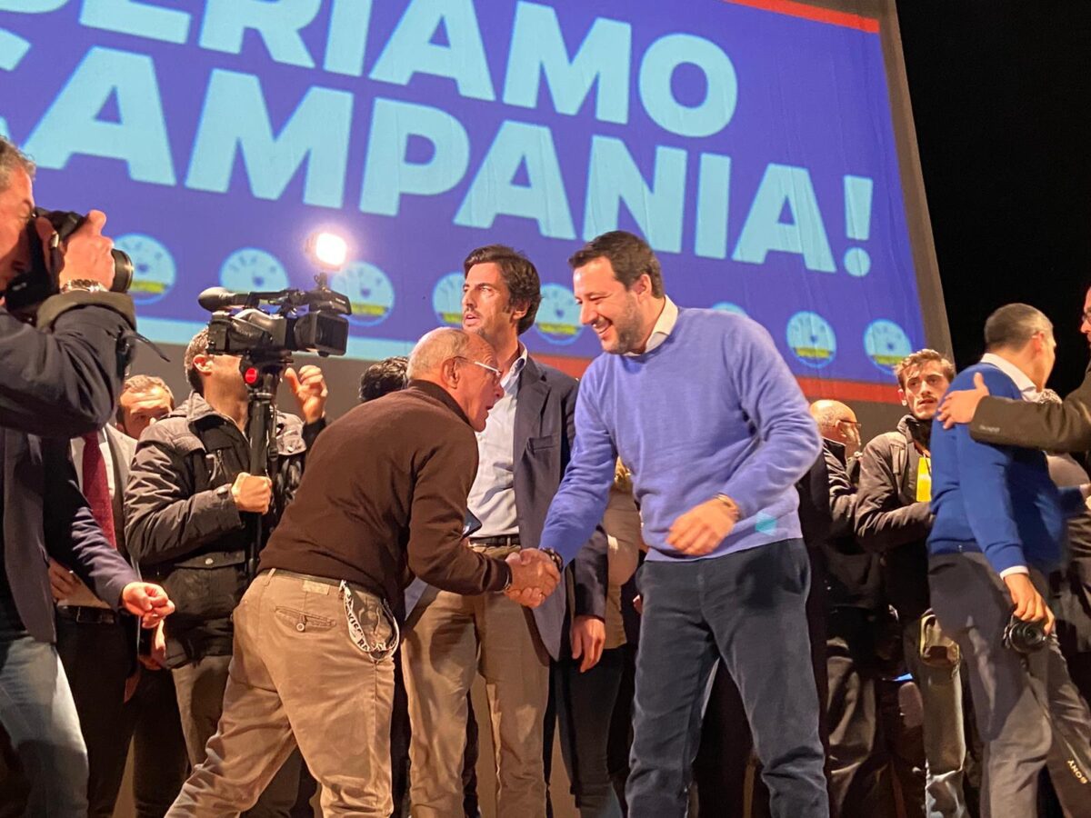 “In Campania stiamo preparando la squadra migliore e per il comune di Napoli vogliamo un candidato leghista”. E’ l’annuncio di Matteo Salvini nel corso del comizio tenuto nel pomeriggio al Teatro Augusteo a Napoli. La visita del leader della Lega è stata accolta dalla proteste dei centri sociali e delle Sardine napoletane che si sono ritrovati a largo Berlinguer, lungo via Toledo, nel tentativo, invano, di raggiungere l’esterno del teatro partenopeo.