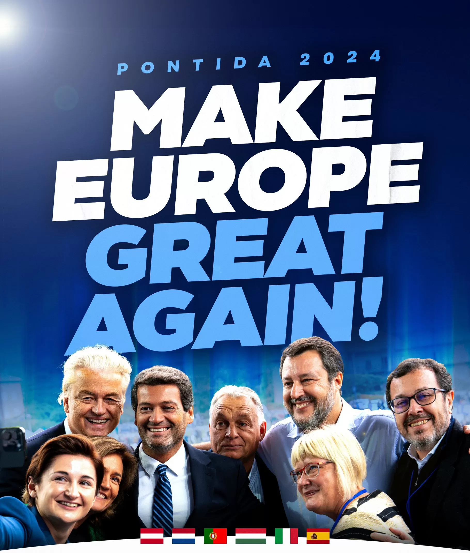 Dopo Pontida la comunicazione di Matteo Salvini va a risciacquarsi i panni nel Potomac. Addio, quindi, alle acque sacre del Po per immergersi in quelle più fredde del fiume che taglia in due Washington D.C. Così, all’indomani della manifestazione che da anni celebra l’orgoglio leghista ecco che gli account social di Salvini pubblicano una card grafica dove sotto le foto dei leader della destra europea troneggia lo slogan di matrice trumpiana Make Europe Great Again.