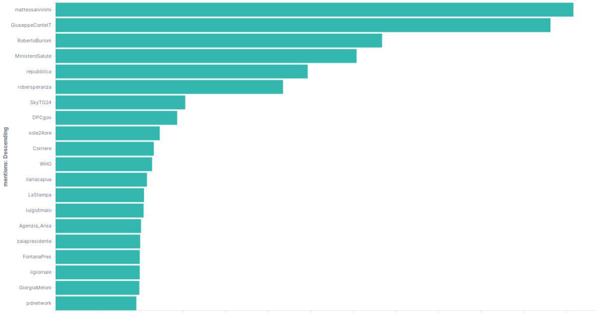 I protagonisti più acclamati fino al 4 marzo sono chiari nel grafico dove notiamo che Matteo Salvini supera addirittura il Premier Giuseppe Conte, che attualmente rappresenta la figura politica di riferimento per le comunicazioni istituzionali di Governo. Salvini sovrasta lo scienziato Roberto Burioni, che a sua volta batte l’altrettanto esperta Ilaria Capua, il Ministero della Salute ed il suo ministro Speranza.