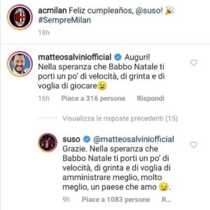 Salvini vs Milan: da Gattuso a Suso il battibecco continua