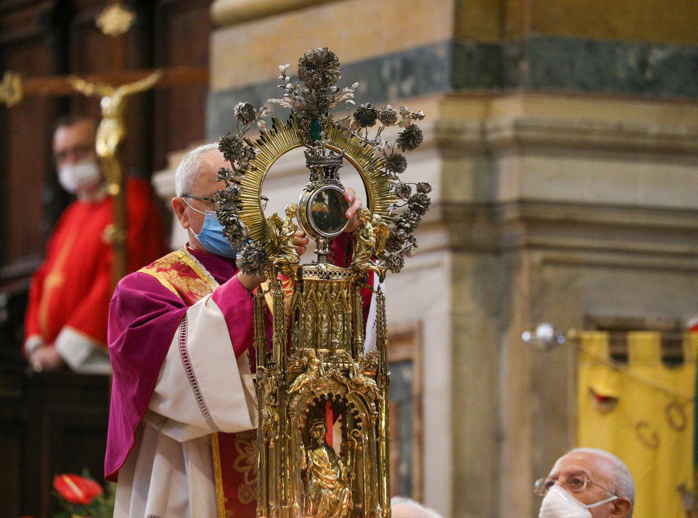 L’OMELIA – “Se c’è qualcosa che si deve sciogliere, questa è il cuore dell’uomo. Allora affidiamo a San Gennaro questa bella intenzione”, ha osservato monsignor Vincenzo Papa, parroco della parrocchia Santa Maria Assunta al Duomo di Napoli, nell’omelia pronunciata durante la celebrazione della messa delle 18:30. “Vorrei che pregassimo per coloro che si stanno impegnando negli ospedali e nelle case di cura, medici, infermieri e operatori sociosanitari, e tanti di loro hanno dato la vita”, ha aggiunto monsignor Vincenzo Papa. E poi è tornato sul miracolo mancato: “Molti stanno chiedendo, e ora che succede? Non succede niente. Ci viene in aiuto la parola di Dio. Stasera a parlarci è San Gennaro, dice a me e a voi di ascoltare Gesù, la sua parola. Se c’è un miracolo che dobbiamo fare noi è sciogliere il nostro cuore, che ogni tanto si indurisce e si allontana dalla grazia di Dio. Questo cuore che ogni tanto diventa di pietra, facciamolo tornare cuore di carne, capace di palpitare ancora, di donare vita, un sorriso, una stretta di mano che non possiamo fare per la pandemia. San Gennaro ci dice che, se ascoltiamo Gesù, il miracolo avviene, non perché il sangue si scioglie o meno, ma perché si scioglie il cuore dell’uomo”.