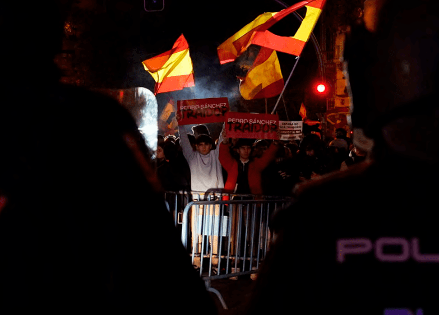 Calle de Ferraz, la via di Madrid che ospita la sede del Partito socialista spagnolo, vive una quotidianità sospesa da quando il premier Pedro Sanchez ha raggiunto l’intesa con Junts per Catalunya di Carles Puigdemont. Da diversi giorni, ogni sera si riuniscono centinaia o migliaia di persone per manifestare contro l’accordo di governo e per denunciare soprattutto l’amnistia promessa da Sanchez ai secessionisti condannati per la dichiarazione unilaterale di indipendenza del 2017. Questo moto di protesta è solo uno dei tanti che caratterizzano la vita della Spagna in questa convulsa fase della propria vita politica.