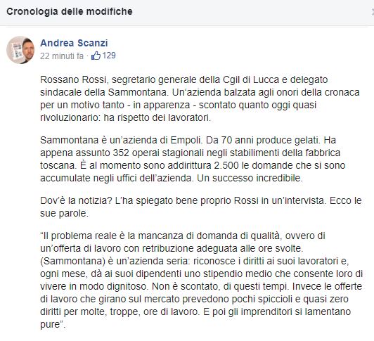 Ma c’è di peggio: perché dopo esser stato ‘avvisato’ dell’articolo che accusa la sua mancanza di professionalità, Scanzi nel pomeriggio di oggi (come dimostrano gli screeenshot pubblicati dal Riformista) ha modificato il post indicando una fonte.