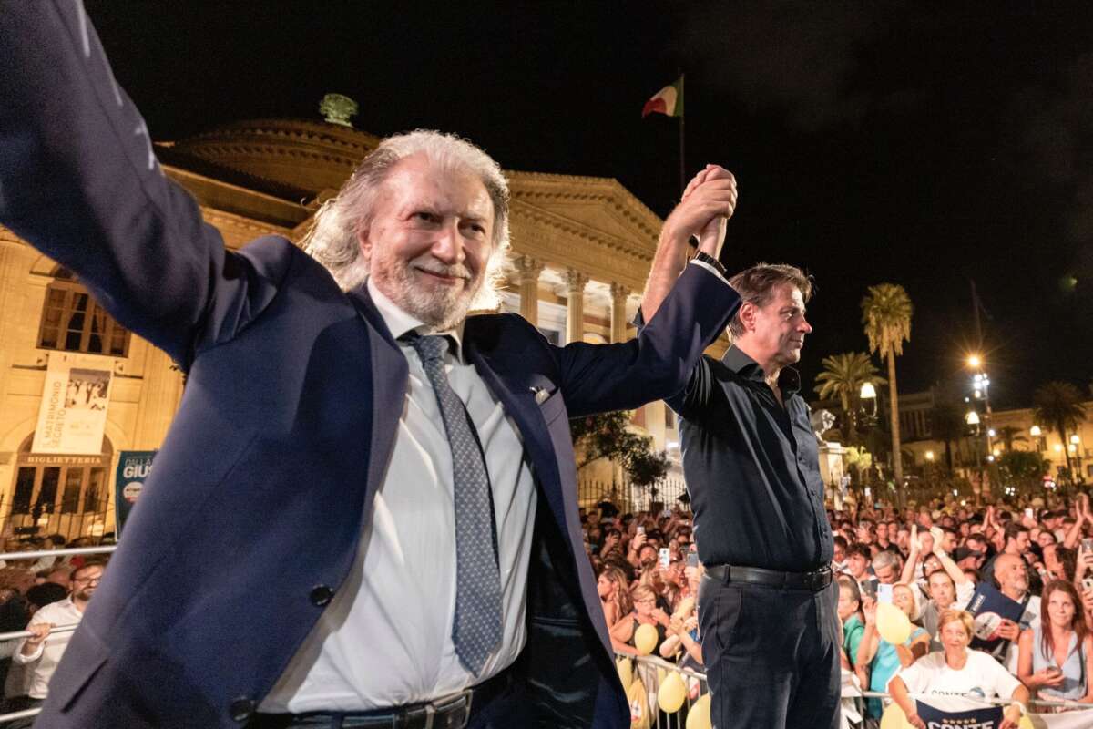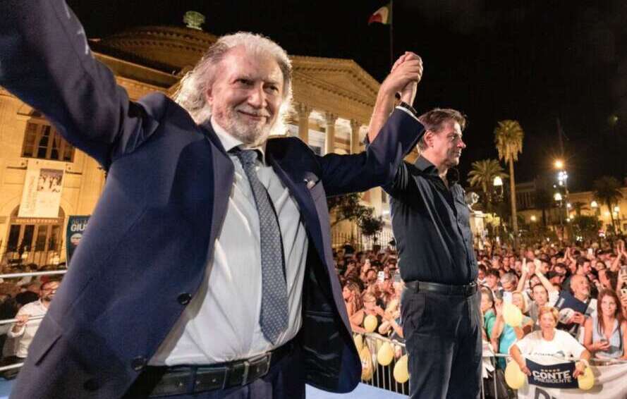 «Proprio perché l’Ucraina non poteva difendersi a mani nude dicemmo all’inizio di sì alle sanzioni ed all’invio delle armi anche se siamo pacifisti. Ma ora l’evoluzione attuale ci dice che la strategia decisa a Washington con la complicità di Londra che la Ue sta subendo passivamente ci porta ad abbracciare il rischio di una escalation militare». Le responsabilità di Putin non le vede. Non esistono, dall’alto del palco di Santi Apostoli, coperte da troppe bandiere. «Siete venuti in tanti da Napoli, dalla Calabria, dalla Sicilia», grida. Si sente, in cuor suo, Achille Lauro. Qualcosa l’ha dato, lanciando il reddito di cittadinanza con il suo governo. Qualcos’altro lo darà, se votate bene. Ed è così che lo ritrae Matteo Renzi: «Conte dice che il reddito di cittadinanza è una misura per i poveri. Ai poveri serve lavoro, sanità, istruzione. Non organizzare un sistema, spesso truffaldino, per garantire il consenso di alcune parti del Paese. Almeno Achille Lauro lo faceva coi suoi soldi, non coi soldi del contribuente».