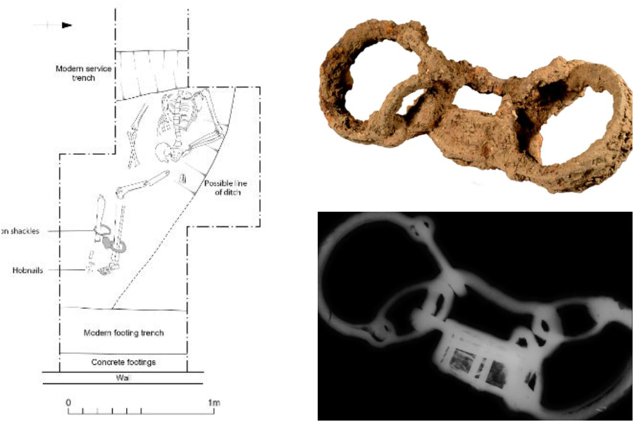 Inoltre, l’individuo era stato anche sepolto a soli 60 metri da un cimitero romano, il che è stato “forse uno sforzo consapevole per separarli o distinguerli dalle persone sepolte all’interno del cimitero“, secondo il comunicato stampa. E’ insolito trovare le catene ancora attaccate sui corpi dei sepolti poiché costava molto produrli o acquistarli. “Per i portatori viventi, le catene erano sia una forma di prigionia che un metodo di punizione, una fonte di disagio, dolore e stigma che possono aver lasciato cicatrici anche dopo che erano state rimosse“, ha detto Michael Marshall, specialista dei ritrovamenti al MOLA. “Tuttavia, la scoperta di ceppi in una sepoltura suggerisce che potrebbero essere stati usati per esercitare potere sui cadaveri e sui vivi, suggerendo che alcune delle conseguenze simboliche della prigionia e della schiavitù potrebbero estendersi anche oltre la morte“. Al contrario, secondo alcune testimonianze scritte dell’epoca si può leggere che i morti venivano sepolti incatenati per impedire a loro di “di risorgere e influenzare i vivi”.