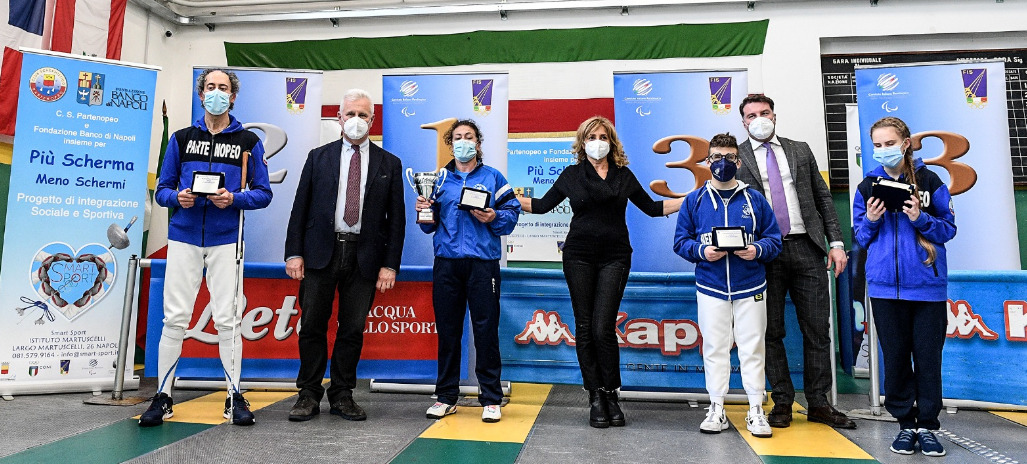 Nella prova paralimpica nazionale (categoria B) da registrare il doppio successo di Rossana Pasquino nella sciabola e nella spada. Terzo posto di Francesco Iannelli nella spada (categoria A) sempre con i colori del Club Schermistico Partenopeo. A premiare i vincitori Paolo Azzi, presidente della Federazione italiana scherma, i consiglieri federali Alberto Ancarani e Matteo Autuori, Vincenzo Agata, vicepresidente Fis Campania e Carmine Mellone, presidente Cip Campania. “La prima gara nazionale dopo il lockdown è stata faticosa per gli organizzatori nel pieno rispetto dei protocolli anti-Covid ma ha funzionato tutto benissimo con il coinvolgimento di atleti provenienti da tutta Italia”, conclude Cuomo.