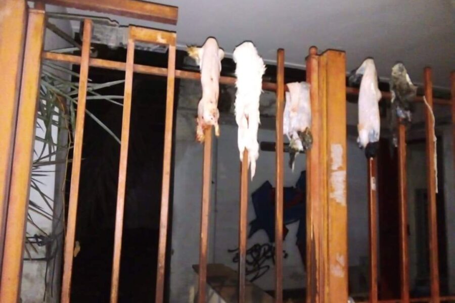 Scarti di macellazione di conigli appesi alle grate dell’ex pronto soccorso. Scherzo macabro e di cattivo gusto quello andato in scena giovedì sera, intorno alle 20, a Napoli, nel quartiere Pianura. Le prime segnalazioni dei residenti facevano riferimento a dei gattini scuoiati vivi e addirittura avvelenati, creando notevole allarmismo. Numerose infatti le denunce via social e nei gruppi animalisti che condannavano un gesto così “brutale”.