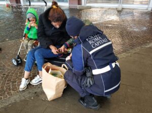 Alcune pattuglie della Polizia Locale di Roma Capitale del GSSU (Gruppo Sicurezza Sociale Urbana), durante il solito servizio di controllo nella zona della stazione Termini, hanno subito notato una giovane coppia, disorientata e in evidente stato di necessità: 28 anni lui, 23 lei, incinta, in compagnia di due figli piccoli.