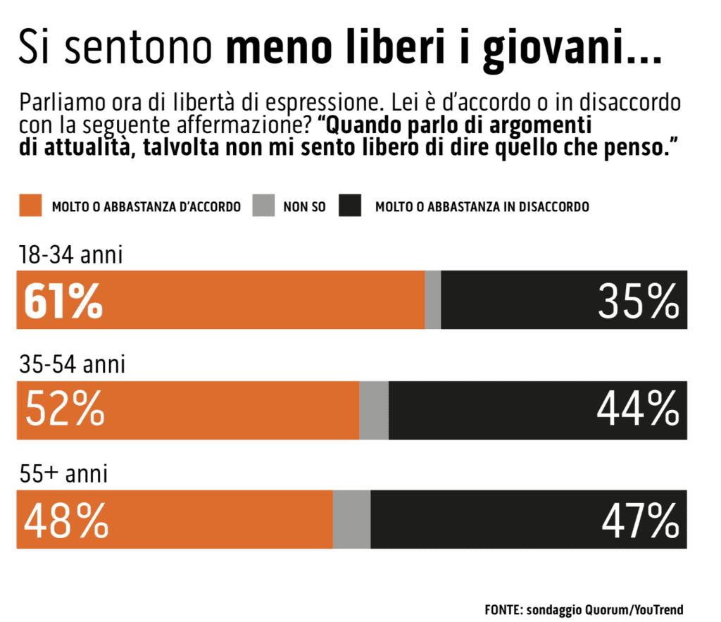 Un sondaggio Youtrend rivela che gli under 34 vedono minacciato un loro diritto. Tra bestie social e politicamente corretto, insorgono nuove problematiche per la democrazia liberale